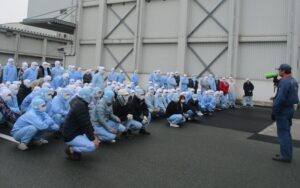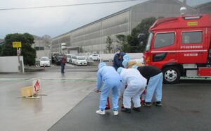仕事始めの日は例年通り、消防署立ち会いのもと、避難訓練を行いました。