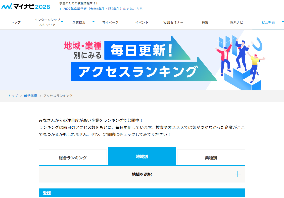 4/13付のマイナビ2028の地域別(愛媛県)ランキングで、13位に入っていました!